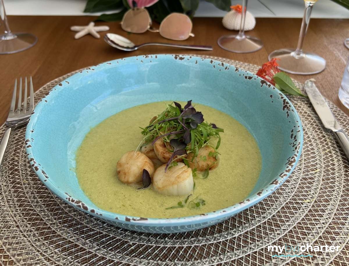 Isabella hails from the Isle of Wight, a historic yachting hub. She found a love for all things watersports from a very early age and alongside that, was taught everything in the culinary arts by her father, who had been a chef at her age. She worked in high end private chalets in the French Alps, taught watersports to kids in Kos, Paddleboarding and SUP Yoga to guests in Syvota, before meeting James and taking on a crew couple role in the Caribbean Islands in 2017. She has cruised St. Martin, Anguilla, St Parts, St Vincent & the Grenadines, BVI’s and the Bahamas.