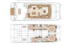 OMAKASE is classified primarily as a power catamaran. The yacht layout radiates from the main saloon, which connects to the aft deck. The aft deck features a variety of seating areas and that's where the guests spend most of their time. The modern cabins are located below the main saloon, connected by stairs (inquire about handicapped access). The cabins offer unbeatable views in the morning and are located just below deck. Multiple portholes connect you with the outside world.