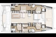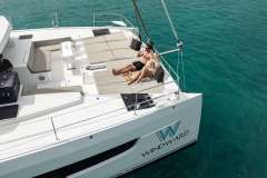 OUT OF THE BLUE is offered primarily as a sailing catamaran. The central space of the yacht is the main saloon, which connects to the aft deck. The aft deck features a variety of seating areas and that's where most of the meals are served. The tastefully decorated cabins are connected by stairs to the main saloon - roomy, comfortable and pleasant. The cabins offer designer mattrace beds and feature ensuite bathrooms. Multiple portholes offer desirable views, while providing privacy if needed.