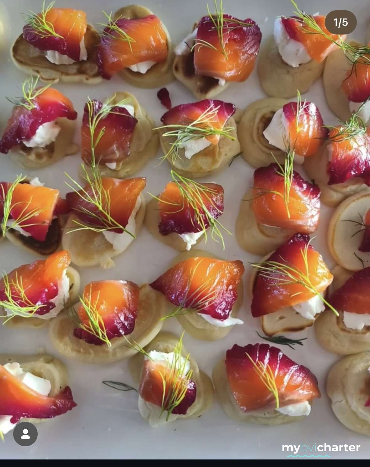 rays touch the bow. Chef Michael turns it into a delicate lunch, perfectly paired with island