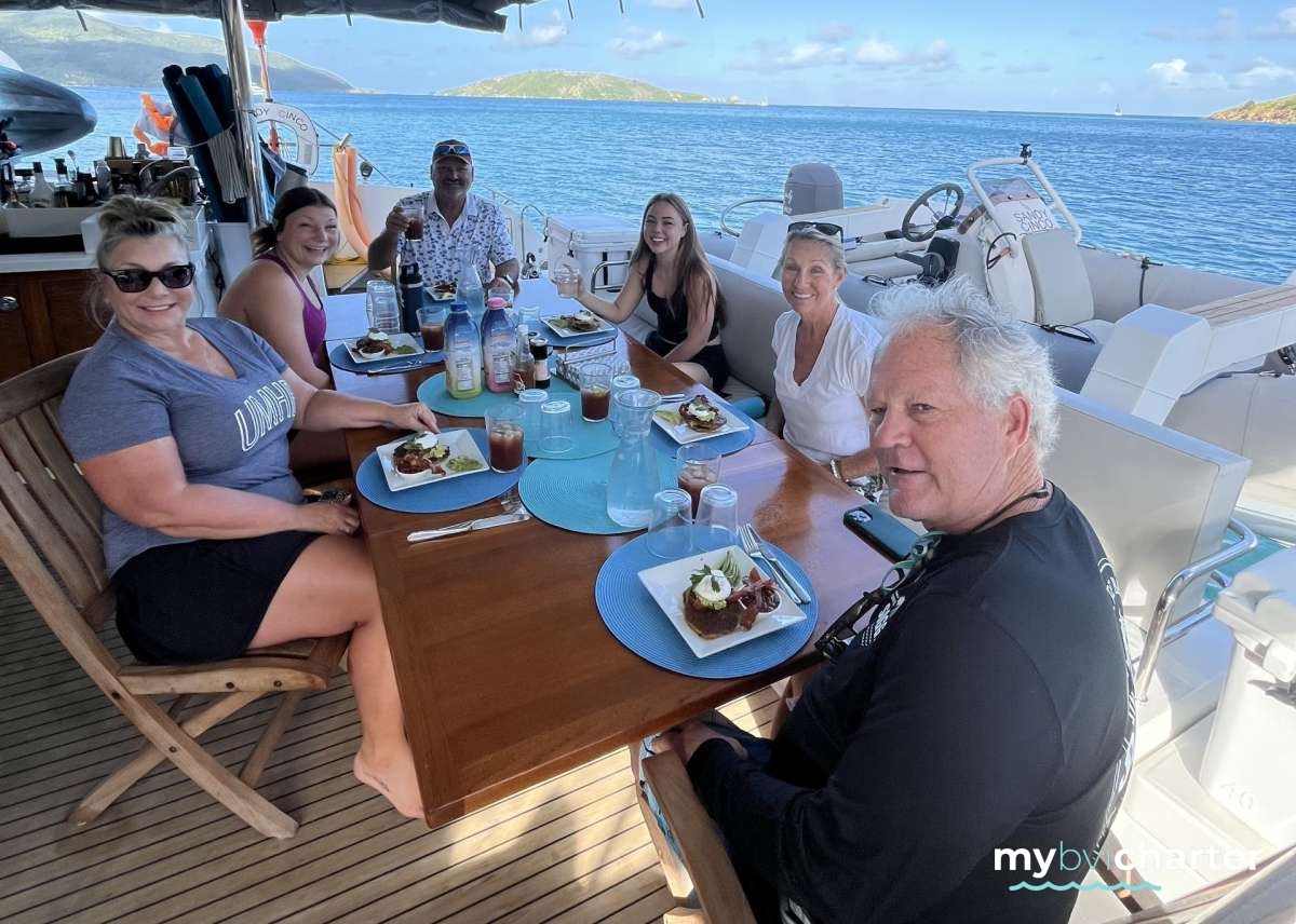 A once in a lifetime trip! Everything about the trip was amazing! The food was spectacular: every single meal was new and so delicious. I ate too much because I couldn't stop eating the food Lizzy prepared. Mike did a spot-on job of keeping us away from crowds, finding the best snorkeling spots and setting us up for stunning sunsets. I cannot recommend Mike and Lizzy and the Sandy Cinco enough. The service was perfect, and they know how to give the best BVI experience. We can't wait to come back! J&T S