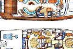 the boat has 4 staterooms and 4 bathrooms, and a 2 person crew area, though the boat would prefer the crew sleeping in one of the staterooms with the over and under bunksCaptain Only