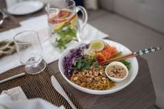 She loves to cook fish and seafood and pair it with local, fresh, seasonal ingredients. She enjoys bright and bold flavours, especially citrus notes which do well to compliment the Caribbean climate. Delicious cool and creamy desserts round off dinner and ensure full and satisfied guests!
