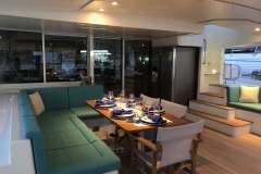 Serenity 64 is offered primarily as a sailing catamaran. The central space of the yacht is the main saloon, which connects to the aft deck. The aft deck is expansive, with a comfortable dining and seating area and that's where most of the meals are served. The modern cabins offer unbeatable views in the morning and are located just below deck. The cabins are located in the 2 massive hulls. Multiple portholes provide a connection with the natural world outside.