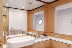 | Master Suite (Main Deck) | King size bed | Private en-suite bathroom with double sinks, separate shower and head | Full AC |