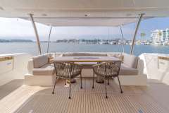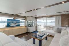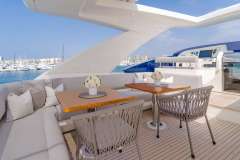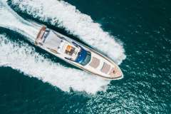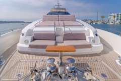 SOL SHINE is what happens when a 96’ Ferretti gets a 2023 reboot and decides it wants to be your private beach club, not your hotel corridor. The whole boat is built around usable outdoor space: a sociable sun deck with bar and shaded dining, water’s‑edge stern sun pads right on the swim platform, and a foredeck lounge and twin sun pads for when you need distance from humanity (or the kids).