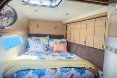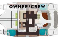 2 Queen cabins for guests use on port side.Owners cabin for owners/crew on starboard side.