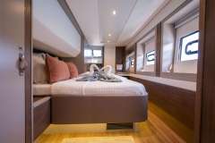 4 queen berth guest cabins each with a private en-suite electric head, stall shower and sink/vanity. The starboard aft cabin does not have a full shower, and has a wet head.All cabins have individually contract air-conditioning for each cabins comfort.