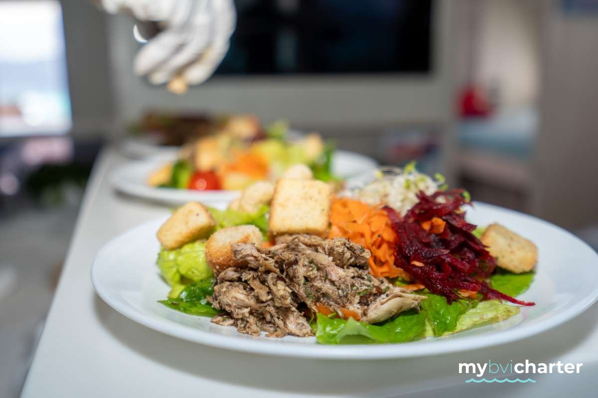 Includes; 7 breakfasts, 4 lunches & 3 dinners, all other meals to be eaten ashore at client's expense.