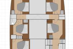 No Captain Only charters.What is the cabin arrangement of Tranquila?