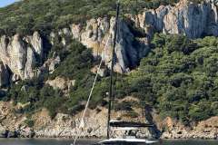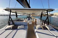 The sailboat features 2 x 150 HP Yanmar engines, 2 x 17,5 kW generators engines and a generator.