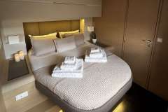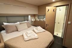 Tranquila is presented primarily as a sailing catamaran. The yacht layout radiates from the main saloon, which connects to the aft deck. The aft deck is generous, with a prominent dining and seating area and that's where the guests spend most of their time. The modern cabins offer unbeatable views in the morning and are located just below deck. The cabins offer designer mattrace beds and feature ensuite bathrooms. Multiple portholes provide a connection with the natural world outside.