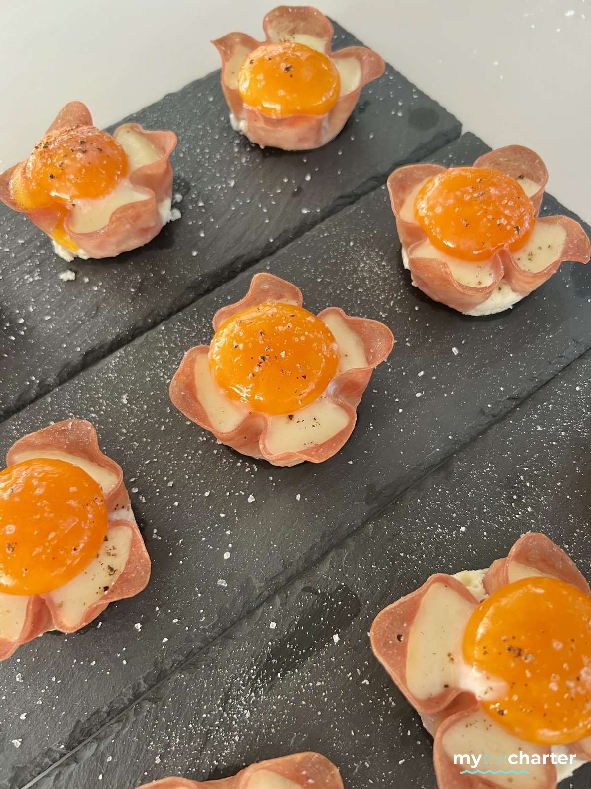 Culinary experiences aboard Tranquila are carefully crafted to delight every guest. Francesca and Matteo specialize in Italian and Mediterranean cuisine while also offering Caribbean, Asian, and Mexican-inspired dishes. They create custom menus tailored to dietary preferences and requirements and pair meals with carefully selected wines, ensuring dining is effortless, memorable, and fully enjoyed without worry.