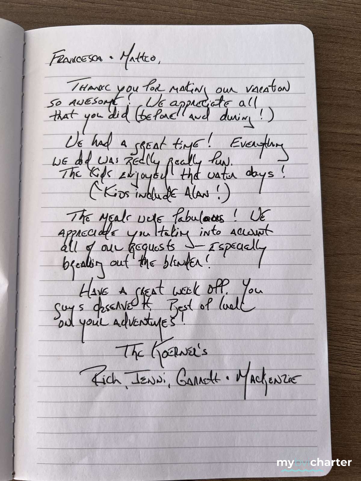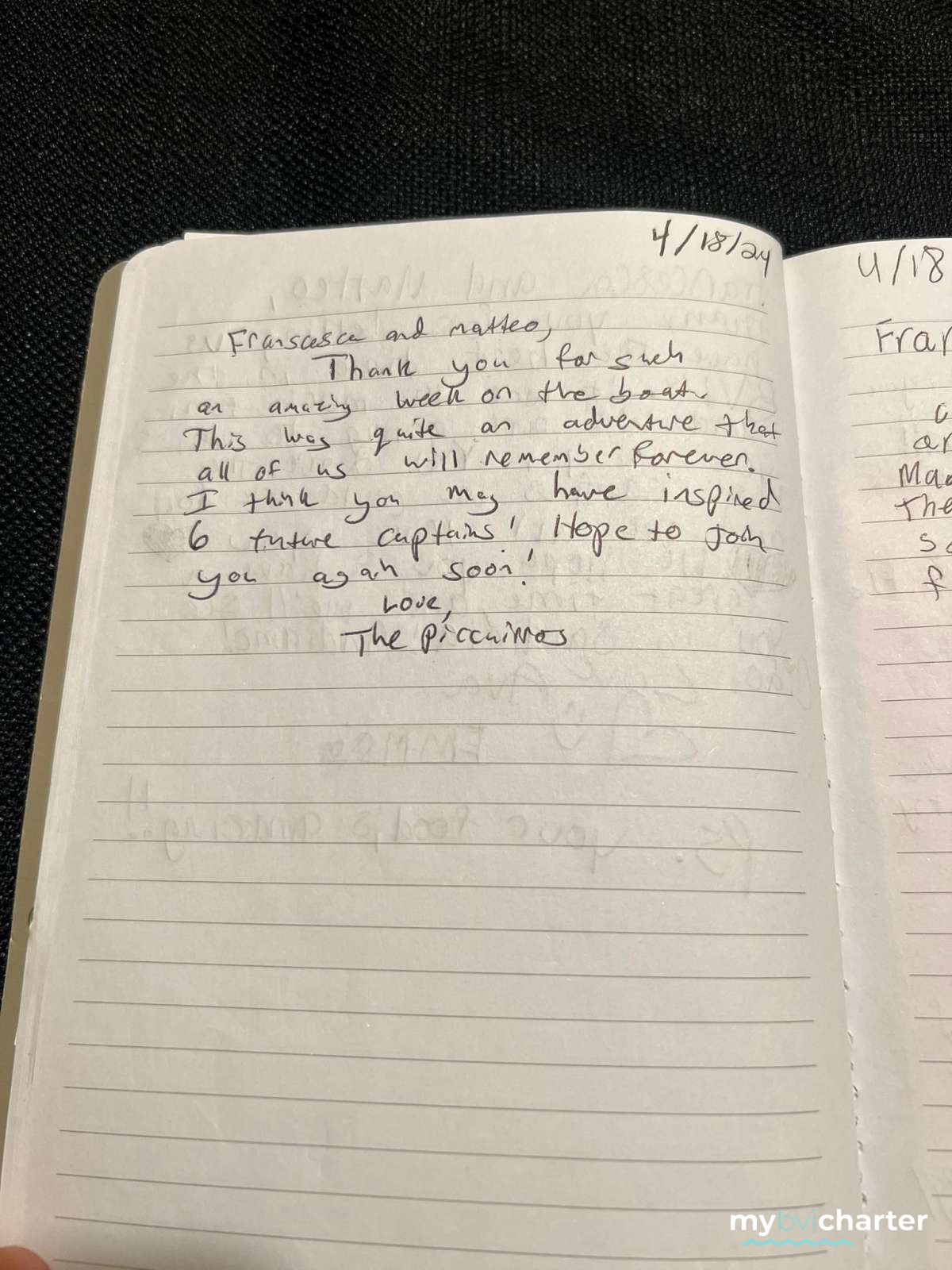 Matteo and Francesca were amazing hosts, great captains and cooks, they made our trip so special and now we consider them family!