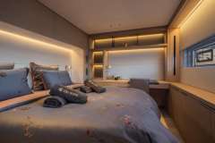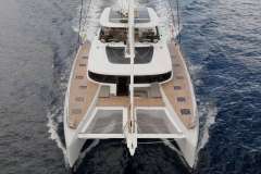 TriWing Endor is presented primarily as a sailing catamaran. The yacht layout radiates from the main saloon, which connects to the aft deck. The aft deck features a variety of seating areas and usually it is where you, as a charter guest, spend most of your time. The modern cabins offer unbeatable views in the morning and are located just below deck. The cabins are located in the 2 massive hulls. Multiple portholes add to the feeling of connection with the discovered environment.