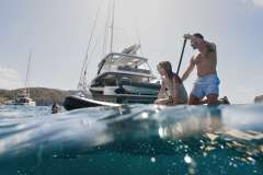 This yacht comes with four amazing crew members, consisting of your Captain, Chef, Hostess and Water Sports Instructor! The team have worked together for multiple seasons in the Mediterranean, and are bringing their personalities and skillset over to the Caribbean to accompany you and make every moment unforgettable. Savour exquisite gourmet meals while admiring the stunning views of the Caribbean Sea. For adventures on board, a wide range of water sports equipment such as water skis, wakeboards, paddleboards and snorkelling equipment is at your disposal. Whether you want to relax in the sun, dive into the crystal-clear water, or use a private pool area for longer anchorage stops – every wish is catered for on board.