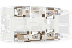 Triwing Endor – Summer is offered primarily as a sailing catamaran. The the core layout is spread out from the main saloon, which connects to the aft deck. The aft deck is where heart of the yacht is and that's where the guests spend most of their time. The immersive cabins are located in the 2 massive hulls. The cabins are located in the 2 massive hulls. Multiple portholes offer desirable views, while providing privacy if needed.