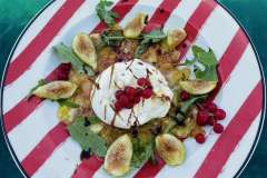 Stuffed figs with prosciutto slices, fresh goat cheese, honey and toasted almonds