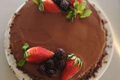 Sweet french toast with maple syrup,chocolate, berries, fruit and cream