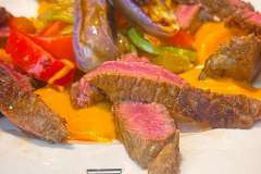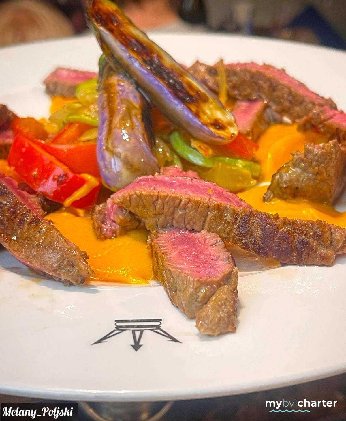 Grilled filet mignon with a truffle sauce and sweet potato puree