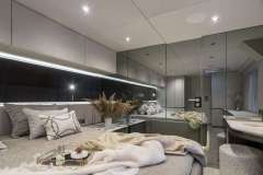 • An stunning 50m² flybridge with bar and lounge, the perfect spot to admire the horizon or enjoy a sunset cocktail.