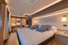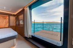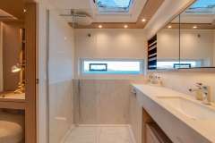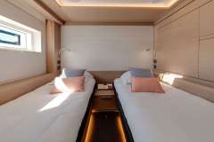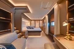 ZENIT is classified primarily as a power catamaran. The yacht layout radiates from the main saloon, which connects to the aft deck. The aft deck is where heart of the yacht is and usually it is where you, as a charter guest, spend most of your time. The modern cabins offer unbeatable views in the morning and are located just below deck. The cabins offer unbeatable views in the morning and are located just below deck. Multiple portholes add to the feeling of connection with the discovered environment.