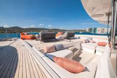 Additional Exterior Accommodation Details: Cockpit cushions, Cockpit speakers, Teak Cockpit, Teak deck, Bimini, Swimming platform with ladders to the water, Hydraulic gangway.