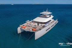 Zenit is introduced primarily as a power catamaran. The the heart of the yacht is the main saloon, which connects to the aft deck. The aft deck is expansive, with a comfortable dining and seating area and usually it is where you, as a charter guest, spend most of your time. The fascinating cabins are located in the 2 massive hulls. The cabins are located below the main saloon, connected by stairs (inquire about handicapped access). Multiple portholes connect you with the outside world.