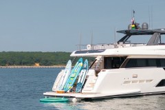 Advertised by DMA Yachting, the astonishing charter yacht DATE NIGHT is a 92 ft yacht featuring a jetski. The highlights of DATE NIGHT are her most appealing features and culinary experience. DATE NIGHT spends the season in British Virgin Islands. She was delivered by the ship builder Ferretti   in 2018. The ingenious yacht layout features 5 large cabins and easily accommodates a maximum of 10 guests.