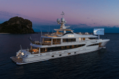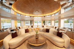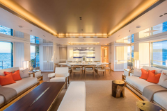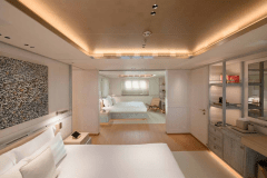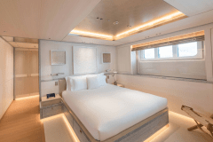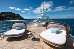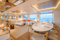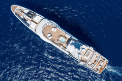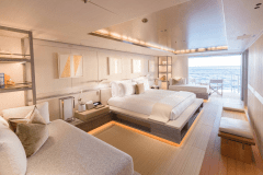 Launched in 2017 by Amels, DRIFTWOOD sleeps up to 12 guests in 5 flexible cabins, including a full-beam master suite with its own study, dressing room and private terrace. The guest setup is modular: doubles that can become twins, twins that can become doubles, plus Pullmans – useful if your group mix changes between family, friends and staff.