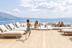 Presented by DMA Yachting, the astonishing charter yacht EMIR is a 270 ft yacht featuring a jetski. The most valuable elements of EMIR are her absolute comfort and inviting socializing areas. EMIR spends the season in British Virgin Islands. She was delivered by the renowned boatbuilder Giorgio Vafiadis in 2004. A well-done refit was fulfilled in 2022. The ingenious yacht layout features 14 large cabins and easily accommodates up to 28 guests.