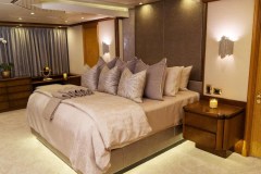She sleeps 10 guests in 5 suites, led by a full‑beam main‑deck master with a king bed and elevator access, so the person paying doesn’t have to deal with stairs. Extra‑wide passageways and a wheelchair‑accessible layout with lift to all decks mean everyone actually uses the whole boat, not just the main salon.
