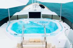 Spacious Jacuzzi on sundeck for luxury relaxation, sunset cocktails, and entertainment under the stars. -