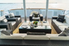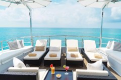 | Teak rear “Beach” platform | Teak rear platform set up as a beach area with umbrellas. |