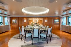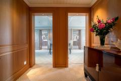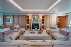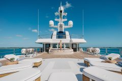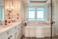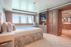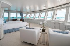 Built in 2009 and refitted in 2022, HUNTRESS sleeps 12 guests in 6 large suites, supported by a 22-strong crew. The upper deck can operate as a genuine private owner’s domain, while everyone else spreads out over six decks of lounges, bar areas and outdoor spaces. An elevator links the decks and the layout is wheelchair-friendly, so all guests can actually use all that space instead of just looking at it in the brochure.