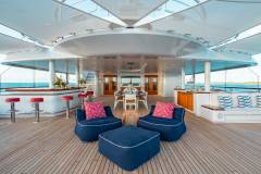 Enjoy the large Jacuzzi and swimming pool on deck, ideal for relaxing, sunbathing, and sunset cocktails.Full Onboard Cinema.