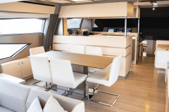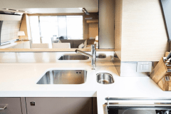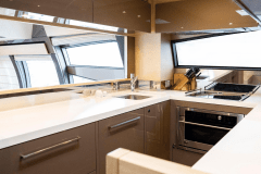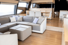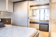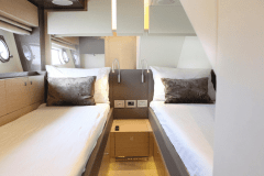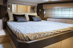 Stability is baked in. Underway and at-anchor stabilisers mean you’re not riding a theme park every time a wake goes by. That matters when you’re doing 23-knot cruising or tapping her 30-knot top speed and still want your coffee to survive the table.