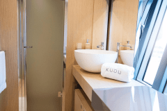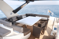 KUDU is the “why-is-everyone-on-the-flybridge” yacht. Start with the hardware: a big, flexible sun deck with retractable hardtop, full dining area and serious sunpad real estate, plus a large hydraulic swim platform that drops you straight into the water (or straight onto the toys) instead of making you tiptoe down a ladder.