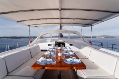 Why charter her? Because you want real sailing, not just white furniture and a noisy generator. L’HIPPOCAMPE is a modified Swan 100S, built to be sailed hard and handled easily, regularly clocking serious passage miles while guests sit in a protected central cockpit with a proper dining area and sunpads instead of clinging to a rail.
