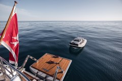 A rare jet tender on a sailing yacht, perfect for quick island trips and water fun. -