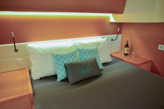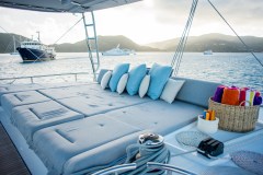 Onboard, space is the quiet advantage: wide catamaran beam, a bright Nauta-designed salon with panoramic windows, and well-separated queen cabins mean everyone gets privacy instead of bunk‑bed diplomacy. Wi‑Fi keeps the real world one click away (if you insist), while the water toy loadout—waterskis, wakeboard, paddleboards, fishing and snorkelling gear—turns every anchorage into a small, well-organised theme park.