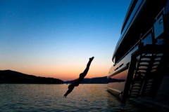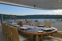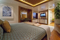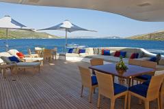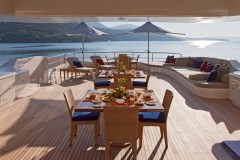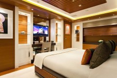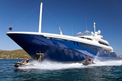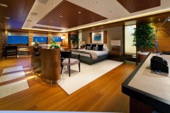 MARY-JEAN II is classified as a superyacht. The key part of the boat -spacious aft deck, leads to the meticulously composed main saloon. The main saloon is a well-design space to spend time when the aft deck might not be as desirable (at port, private conversations) and serves as a location of entertainment. 7 elegant cabins are purposefully laid out with vison for maximum room, access, comfort and privacy.