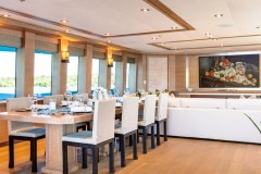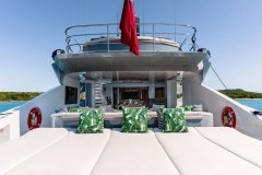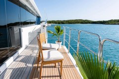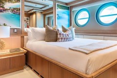 Easy on motion. Stabilizers both underway and at anchor keep things calmer, whether you are cruising or parked up for a long swim day. The shallow 1.77m draft helps too when you want to get closer in.