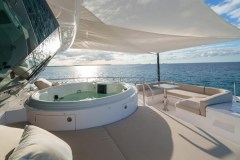 Introduced by DMA Yachting, the impressive charter yacht RIO is a 90 ft motor yacht featuring a jetski and a hot tub. The key elements of RIO are her most appealing features and inviting socializing areas. RIO spends the summer and winter season in British Virgin Islands. She was delivered by the renowned boatbuilder Horizon in 2022. The well-planned yacht layout features 5 cozy cabins and easily accommodates a maximum of 12 guests.
