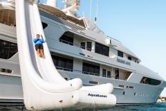 Inflatable waterslide from the sun deck and a floating pool create endless playful moments for all ages. -