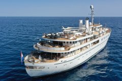 Offered by DMA Yachting, the majestic charter yacht SHERAKHAN is a 229 ft yacht featuring a jetski. The promiment features of SHERAKHAN are her elegant profile and culinary experience. SHERAKHAN spends the season in British Virgin Islands. She was constructed by the ship builder Icon Yachts in 2004. An elegant refit was delivered in 2017. The expansive yacht layout features 13 cozy cabins and comfortably accommodates a group of 22/26 guests.