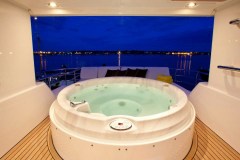 Big-deck Jacuzzi, long‑range expedition hull, and more toys than a beach club. VEGA is an 88ft Nordhavn explorer built to cross oceans, then stop and play. Her oversized deck Jacuzzi, at‑anchor stabilizers and wide 24ft beam turn “remote anchorage” into “private resort,” without the resort crowds.